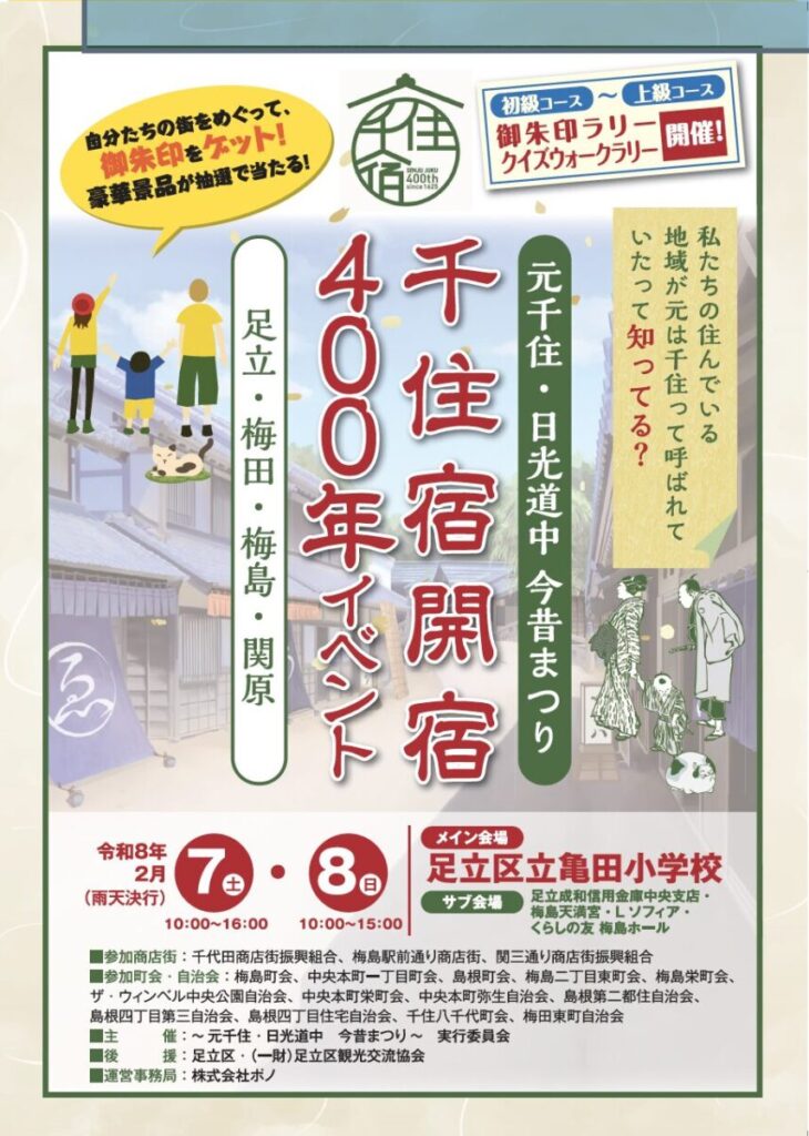 千住宿400年という大きな節目を、元千住のまちから体感してみてはいかがでしょうか。