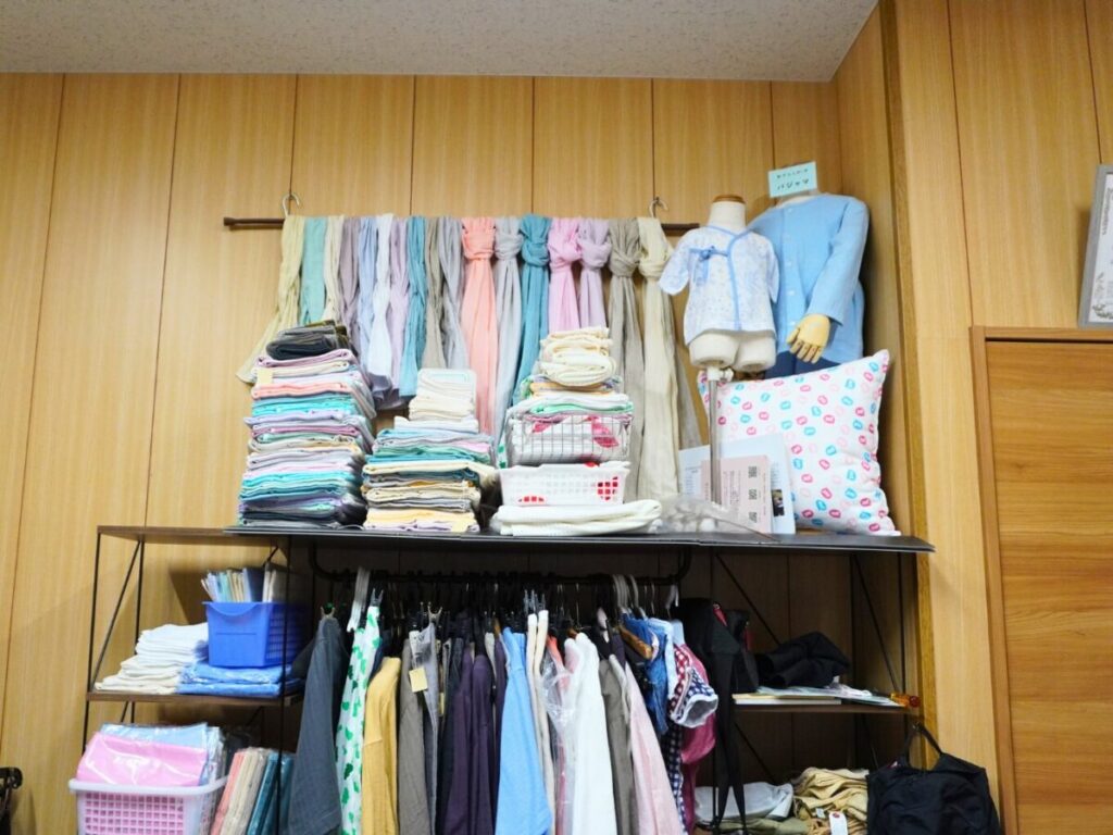 内容:和ざらしガーゼ製品の工場直売(ハンカチ、バスタオル、ベビー肌着、キッズ、ルームウェア、レディースパジャマ、ストール、ミニマフラー)、他婦人服
