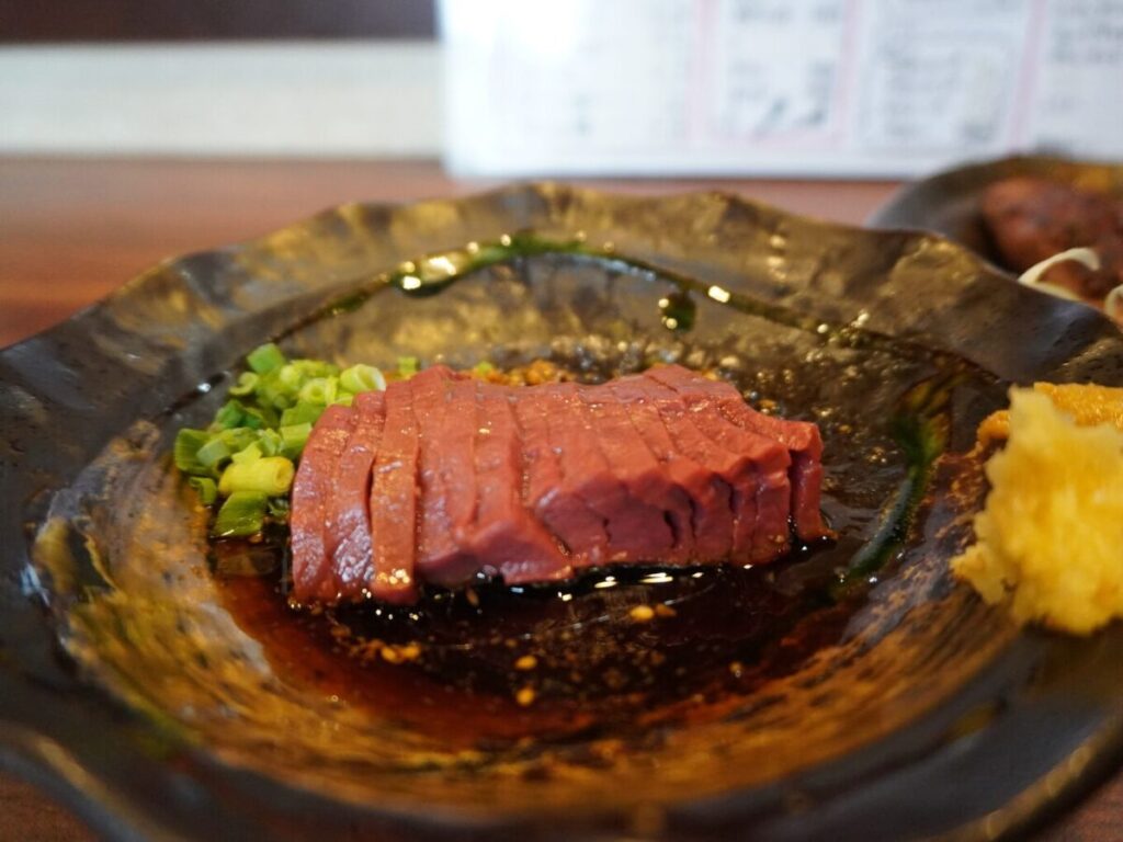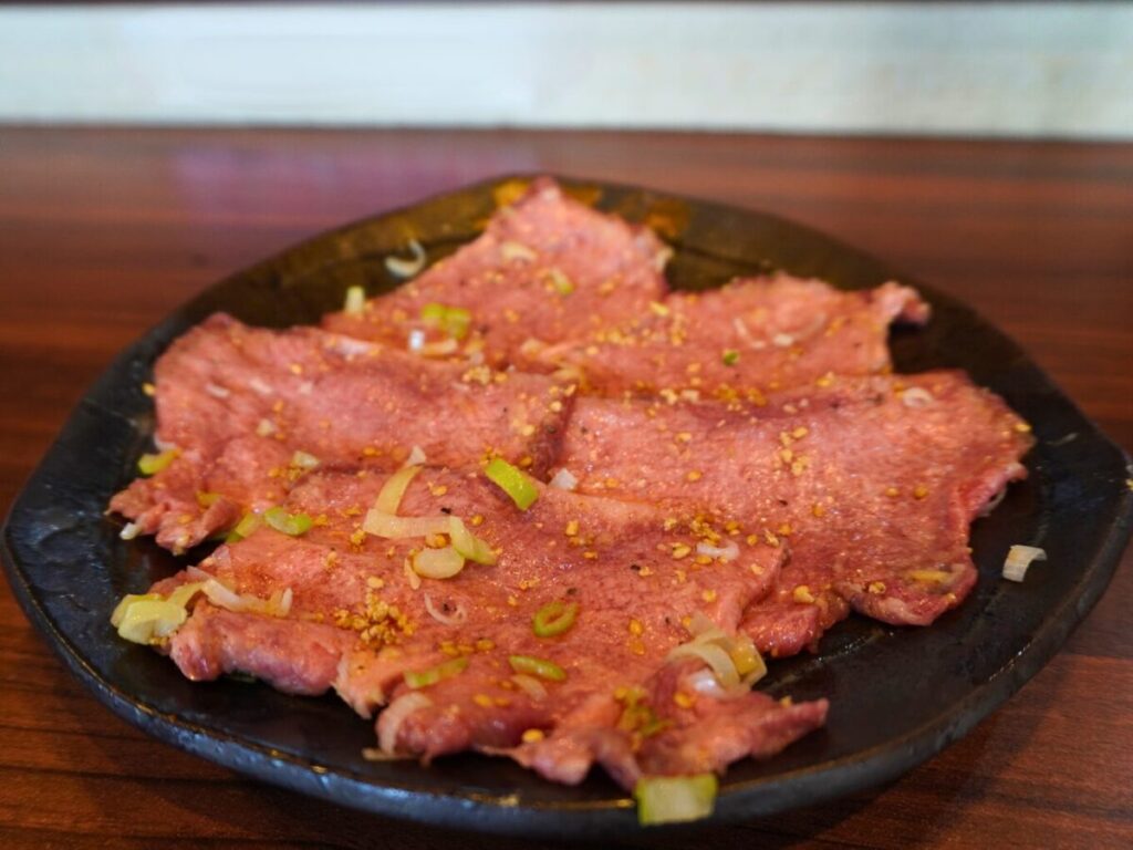 お店の一押しメニューをご紹介いただきました。「特上タン塩」と「和牛ハラミ」です。さらに刺しメニューも豊富で、今回は「ハツ刺」と、SNSで見て気になっていた「タンシチュー」もいただきました。