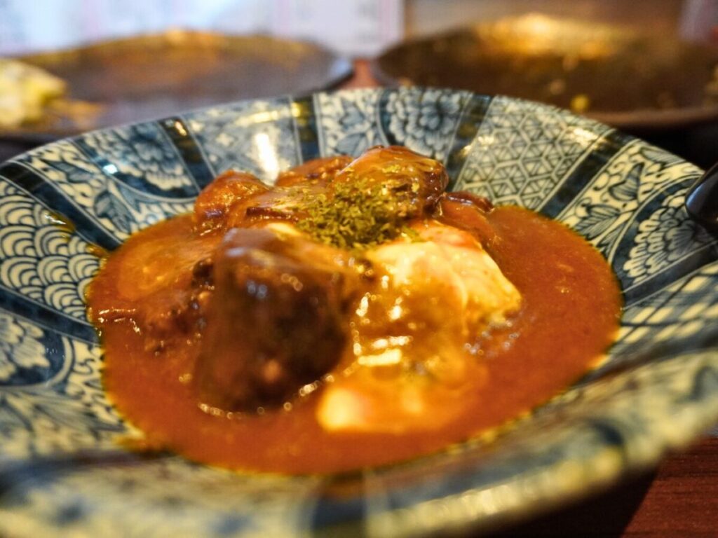 厚みがあるのに柔らかく、噛むたびに旨みが広がる一品。ここでは特製の青唐りんご酢タレでいただきます。レモンもいいですが、このさっぱりとしたタレとの相性は抜群。青唐と聞いて辛さを想像しますが、実際はほんのりピリッと効く程度で、爽やかさを感じました。苦手な方にはレモンも用意してくれるとのことですが、一度は試してほしいタレです。