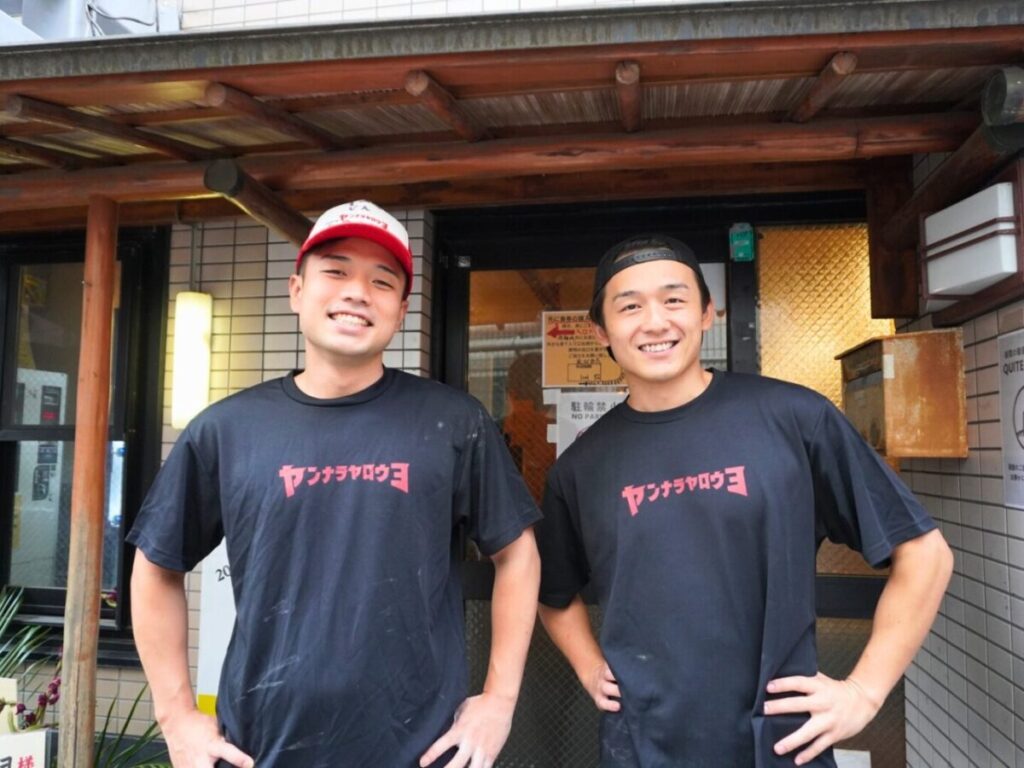 「ヤンナラヤロウヨ」を切り盛りするのは、仁太郎さんと幹太さん。お二人は足立区出身、幼稚園の頃からの幼馴染だそうです。店長の仁太郎さんは、白山にある人気二郎系ラーメン店「俺の生きる道」で修行を積み、幹太さんは、脱サラして幼なじみの仁太郎さんと一緒に飲食の世界へ進みました。