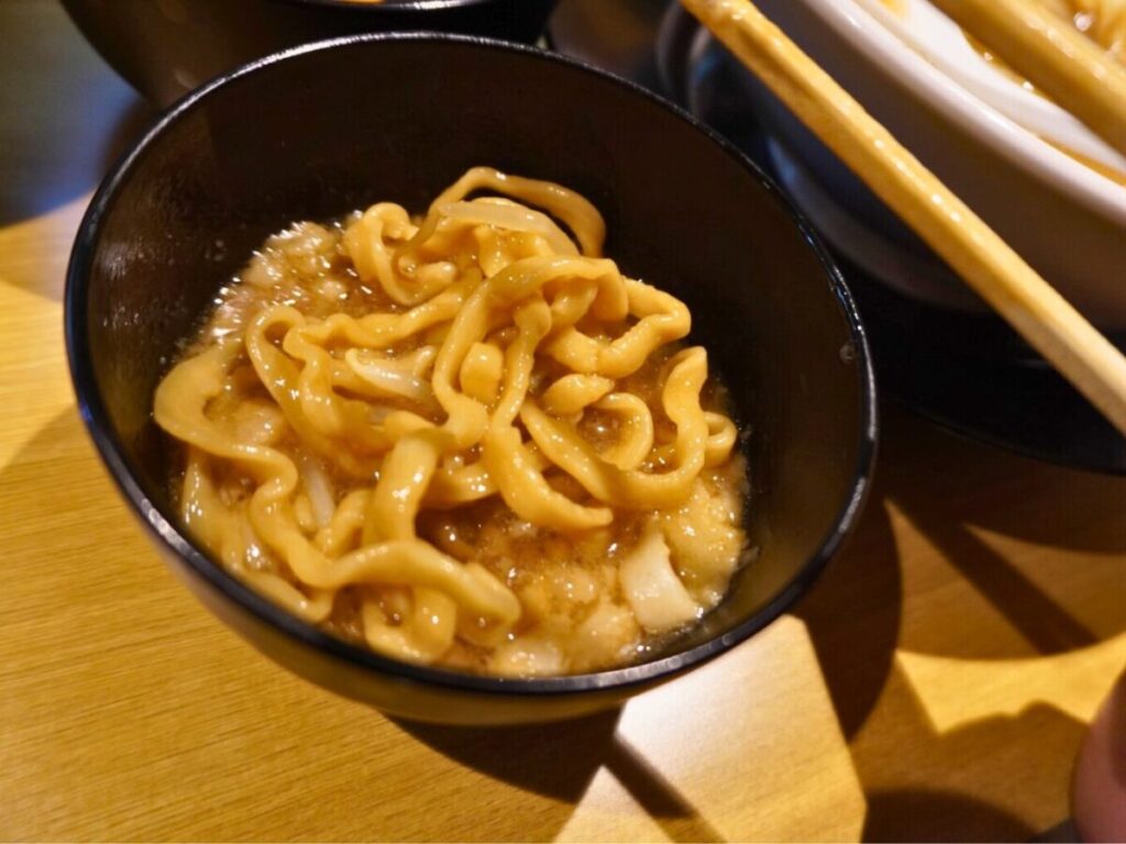 最近Instagramで紹介されていた食べ方を真似してみました!無料でいただける別皿のアブラはそのままラーメンに入れても良いですが、つけ麺風に食べてみるのもおすすめ。アブラの旨味がダイレクトに感じられます。