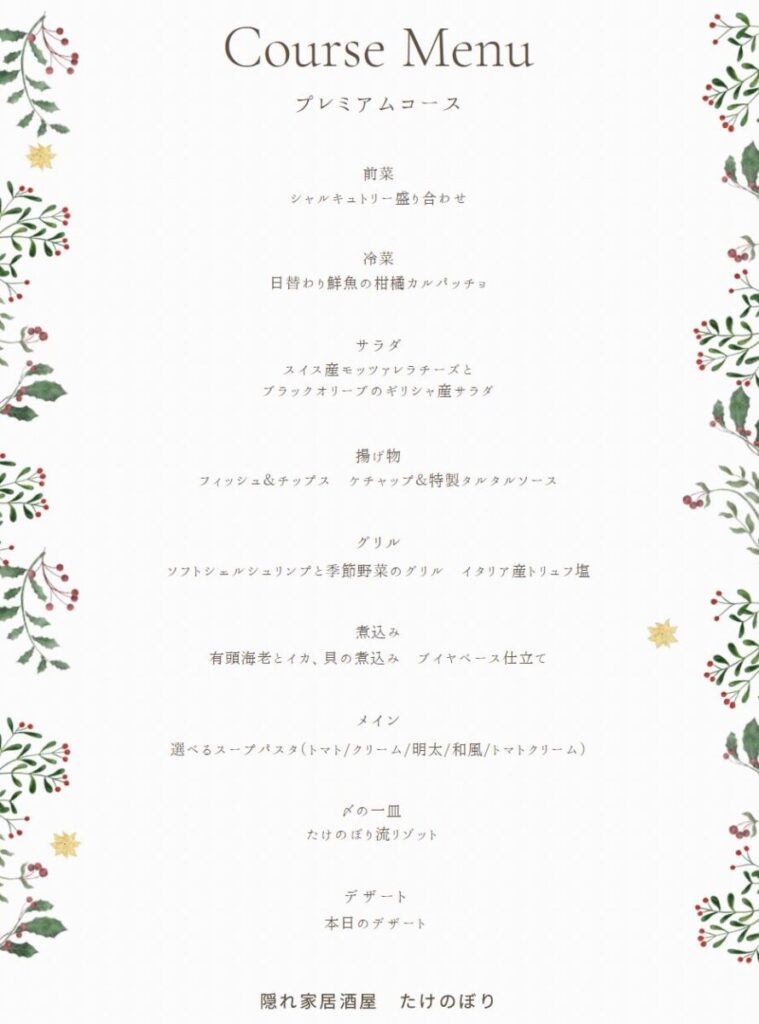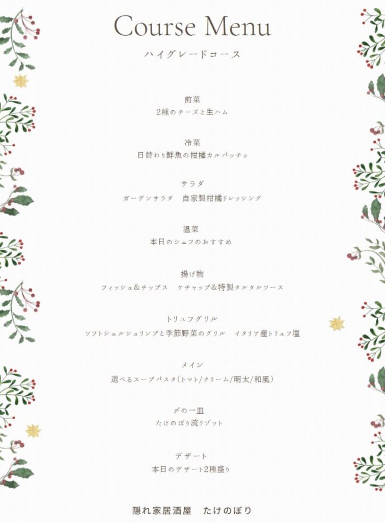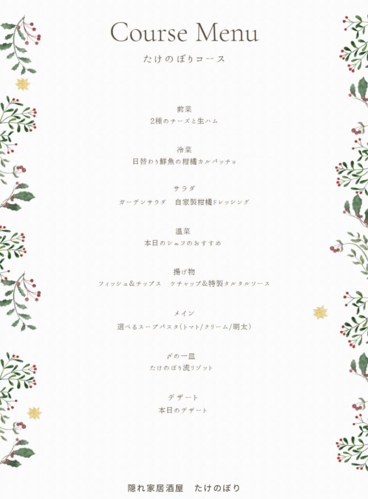 たけのぼりさんからご依頼いただき、冬のコースメニューについて詳しくご紹介します。