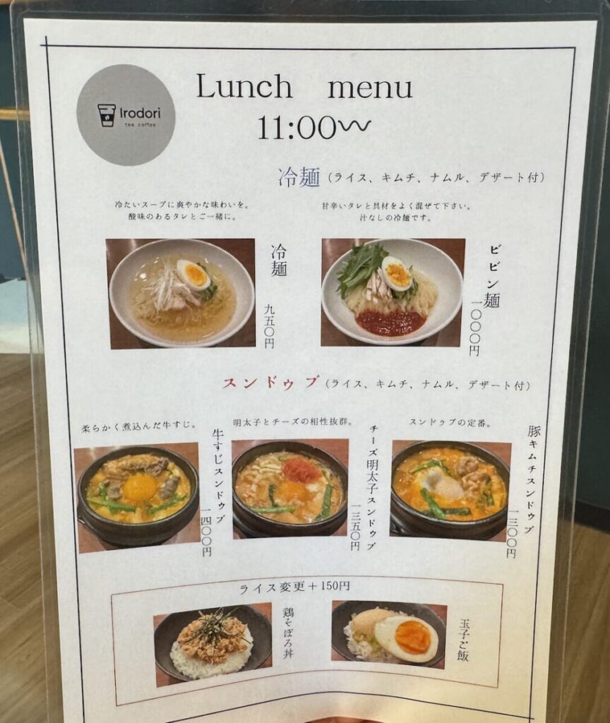 オープン初日にカフェメニューをいただいたのですが、このお店にはもう1つ気になるメニューがありました。それは、高級焼肉レストラン叙々苑に20年以上勤めていたという店主さんが作るランチのスンドゥブ、冷麺、ビビン麺です。