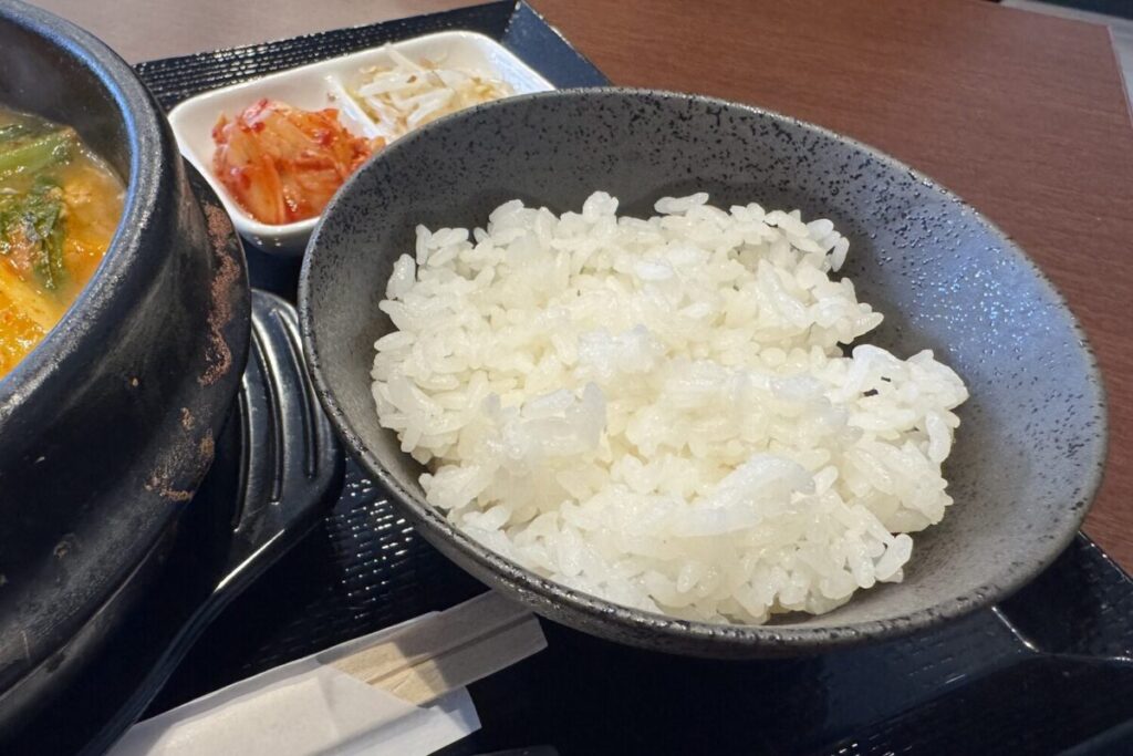 今回は2名で訪れ、豚キムチスンドゥブと、ビビン麺(ライスを鶏そぼろ丼に変更)を注文しました。筆者は辛いものが大好きなのです。