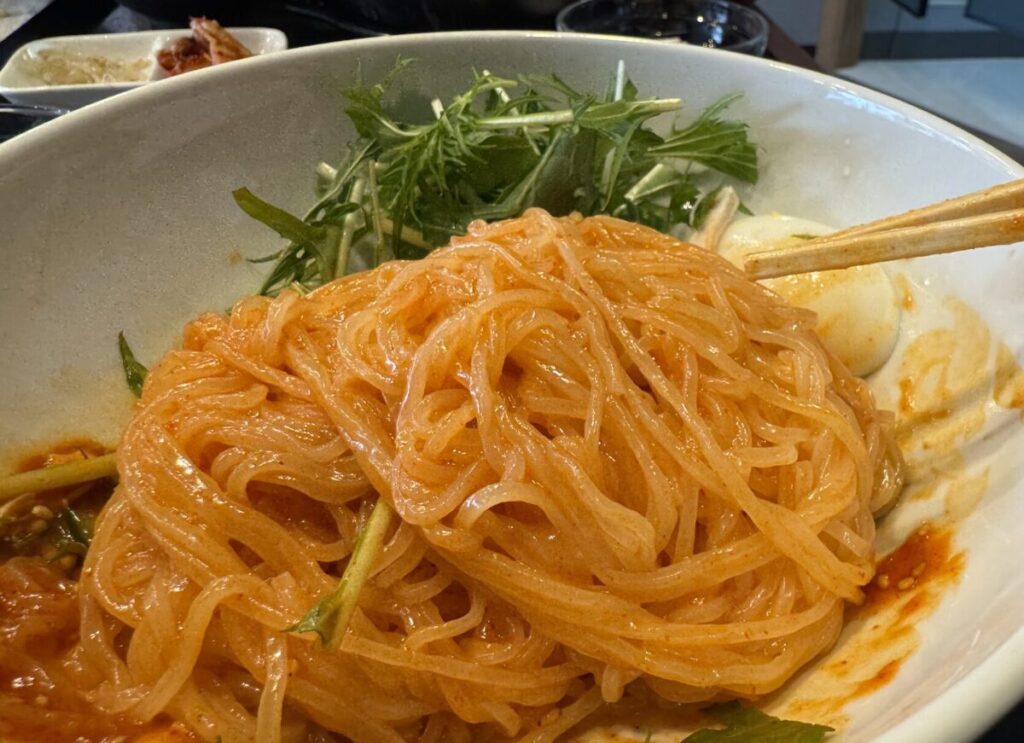 ビビン麺はスンドゥブよりも少し辛めです。激辛まではいかず、辛いものが好きな人が無理せず食べれる辛さという印象でした。
