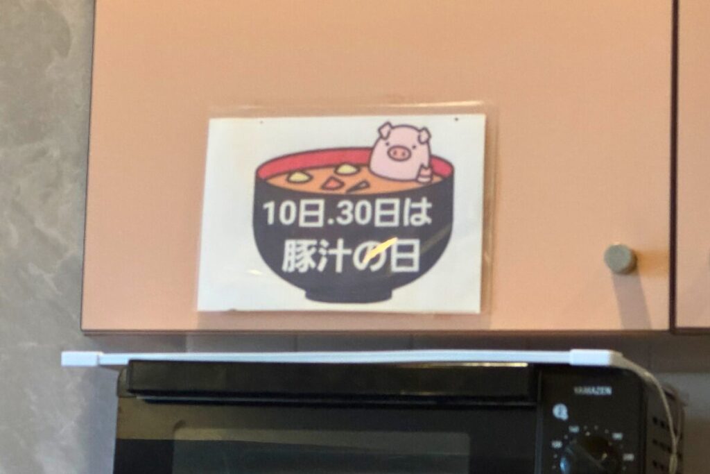 毎月10日・30日は「豚汁の日」として、スープが豚汁になります。