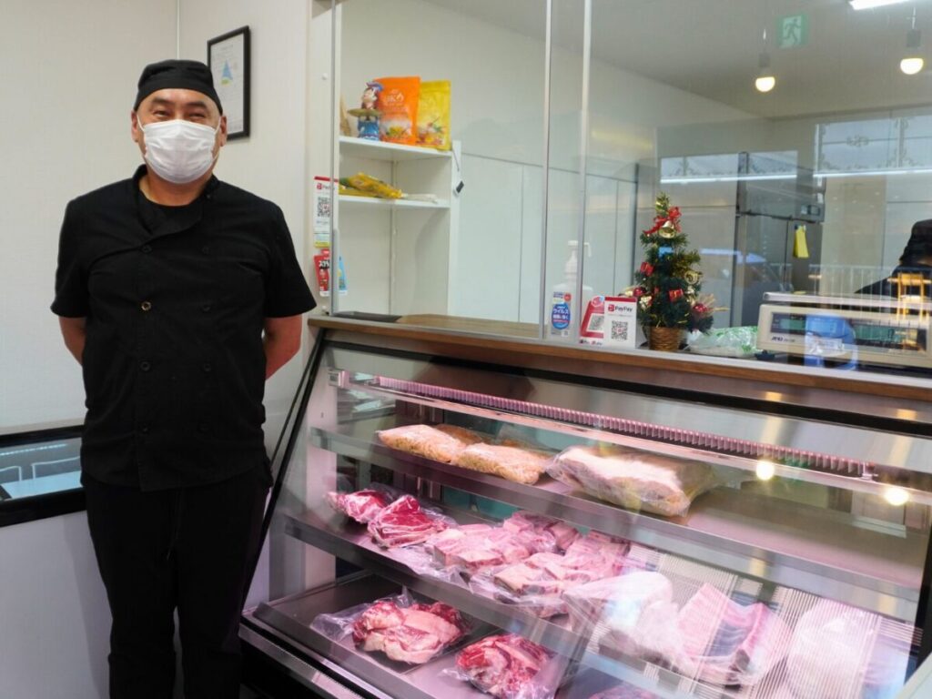 ゲルマートは2023年にオープン。主に日本で暮らすモンゴル人に向けて、羊肉をはじめとしたモンゴルの食文化に欠かせない食材を扱っています。モンゴルでは羊肉をキロ単位で購入する文化があるので、店内には大きなブロック肉が並んでいました。