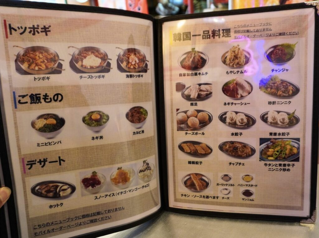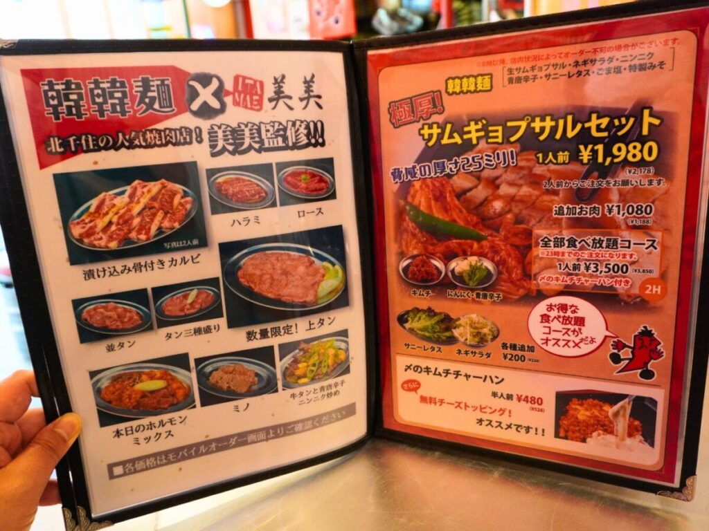 韓韓麺に加わった新焼肉メニュー(ページ左)