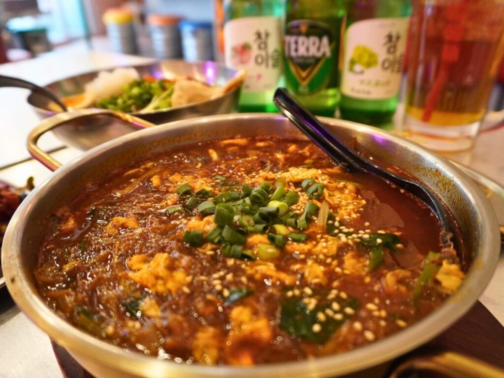 一番人気のユッケジャン麺をデフォルトの3辛でいただきました。