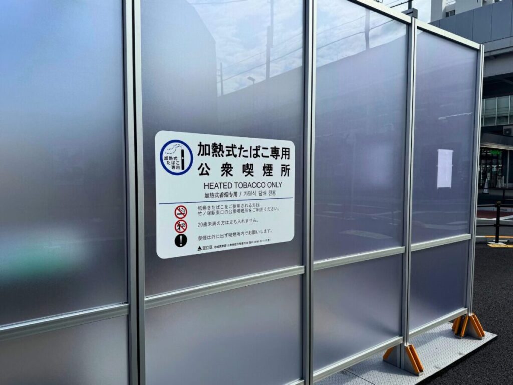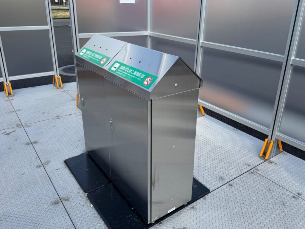 2026年3月、竹ノ塚駅西口ロータリー(竹ノ塚駅西口交通広場内)に喫煙所が設置されました。足立区が整備している公衆喫煙所には主にコンテナ型・パーテーション型の2種類がありますが、竹ノ塚駅西口には、パーテーション型で設置されました。