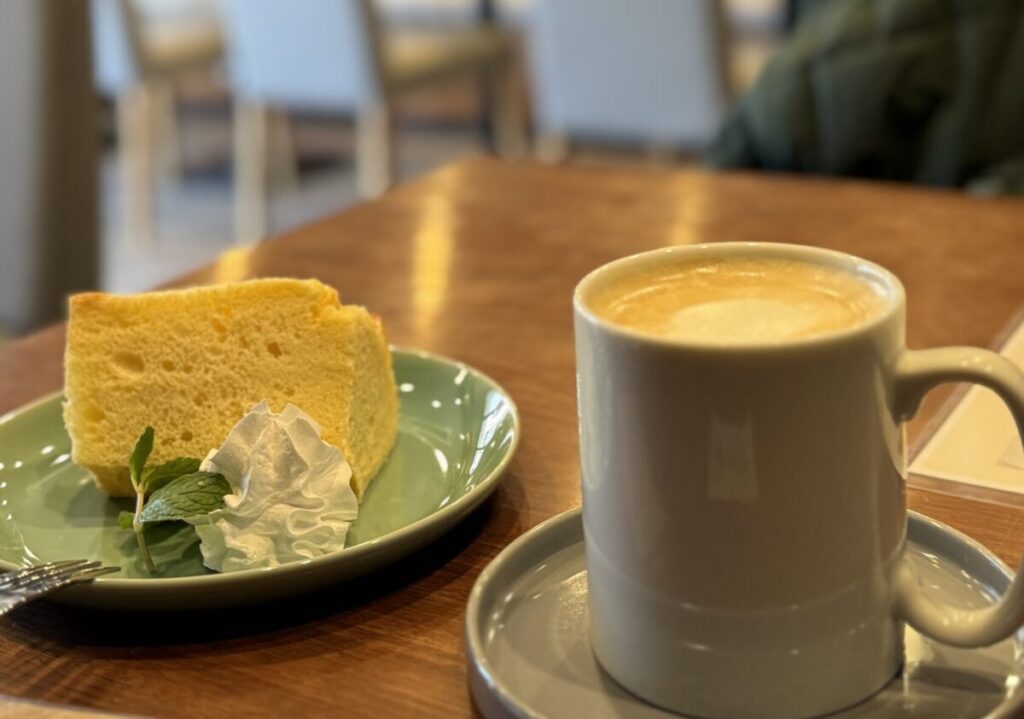 入店したのは10時。お店のおすすめのカフェラテと、シフォンケーキを注文しました。
