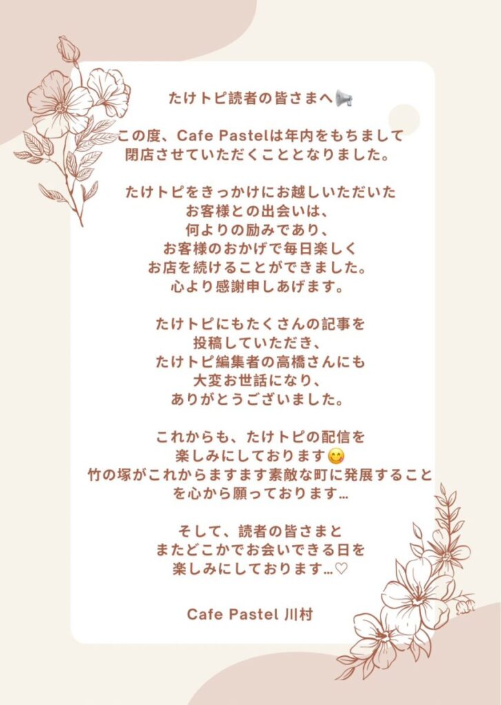 Cafe Pastelさんが、これから新しい道を歩まれることを、心から応援しています。