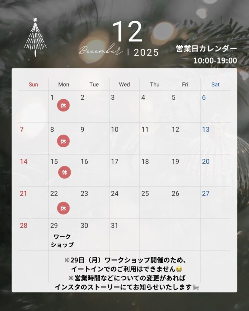 変更になる可能性もありますので、来店前にインスタグラムでご確認ください。