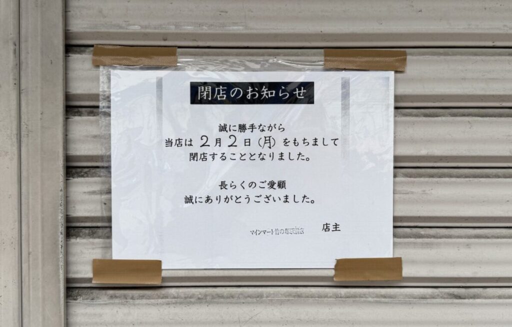店舗スタッフの方によると、現時点では今月(2026年1月)末ごろの閉店予定とのことでしたが、正確な日付については確認できていません。