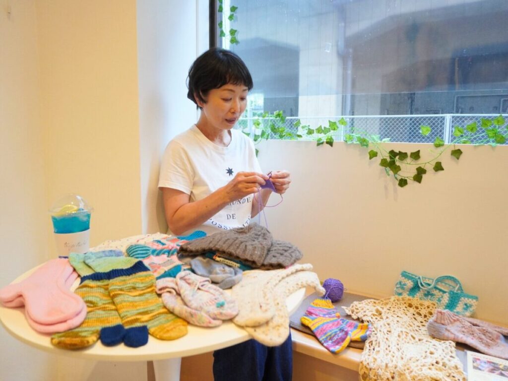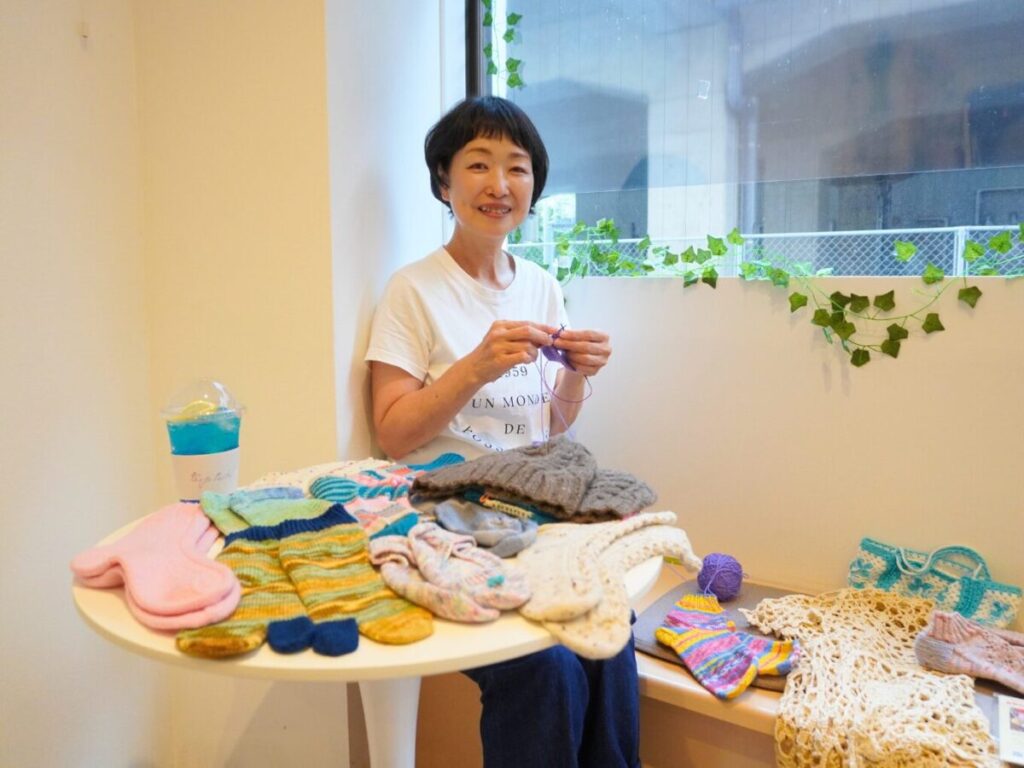 Cafe Pastelで編み物を教えているのは、足立区伊興の編み物教室「くぅずなっぷ」のたかみん先生。