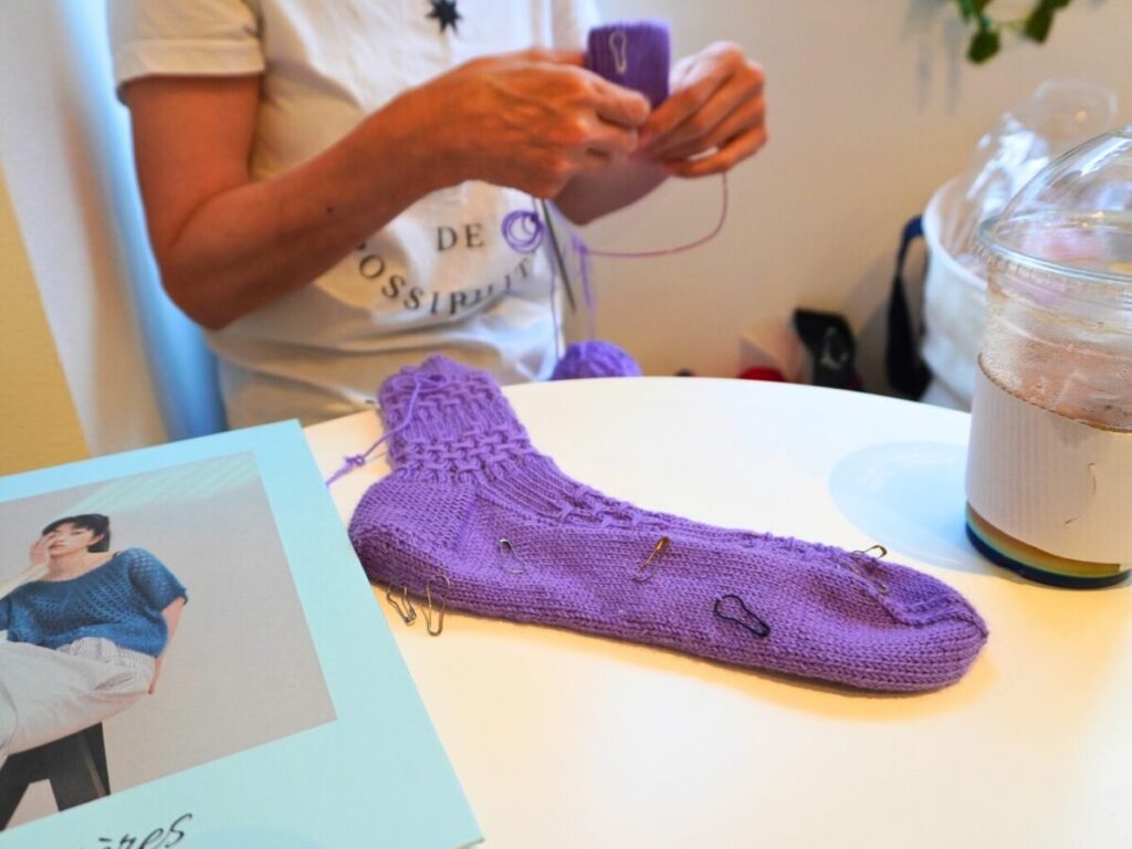 さらに、ソックニッター講座を受講して認定講師資格を取得。現在ではオンライン講座や、足立区内で編み物教室を開催しています。