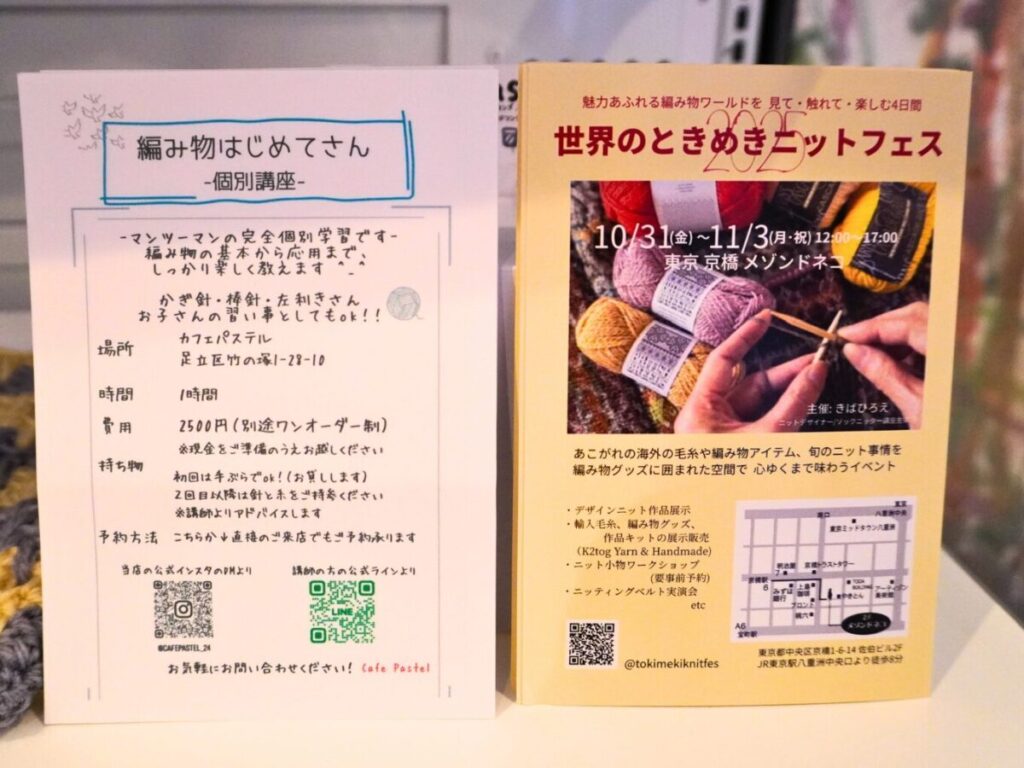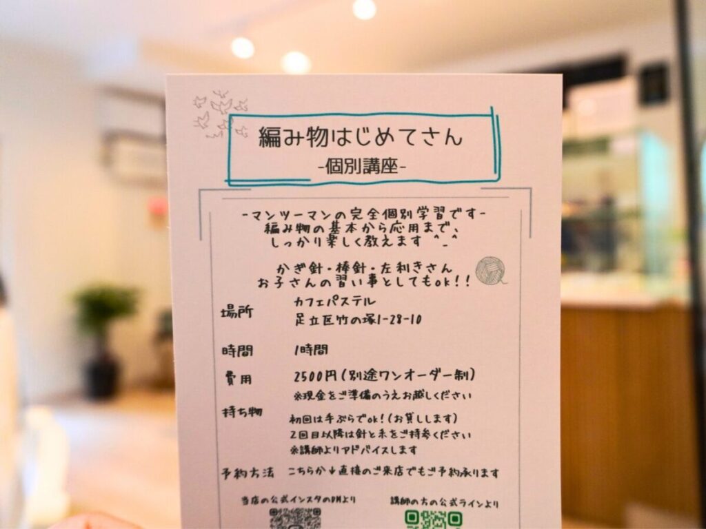 講座は不定期開催で、申込はCafe PastelのInstagramのDM、またはたかみん先生の編み物教室くぅずなっぷのLINEから行えます。
