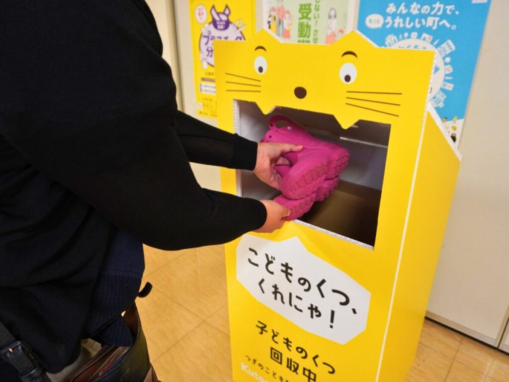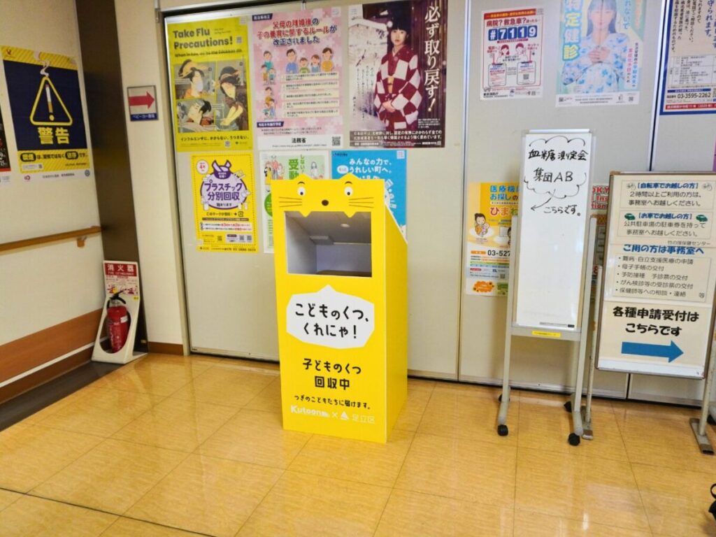 サイズアウトした子どもの靴が寄付できる。「くつにゃん」BOXが竹の塚保健センターに設置されました。