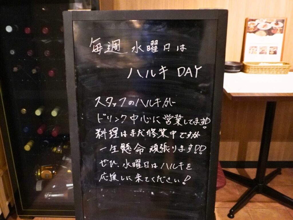 9月24日から、毎週水曜日は22:00から翌3:00までの時間帯で「ハルキDAY」となり、シェフではなくスタッフのハルキさんが一人でカウンターに立つというのです。