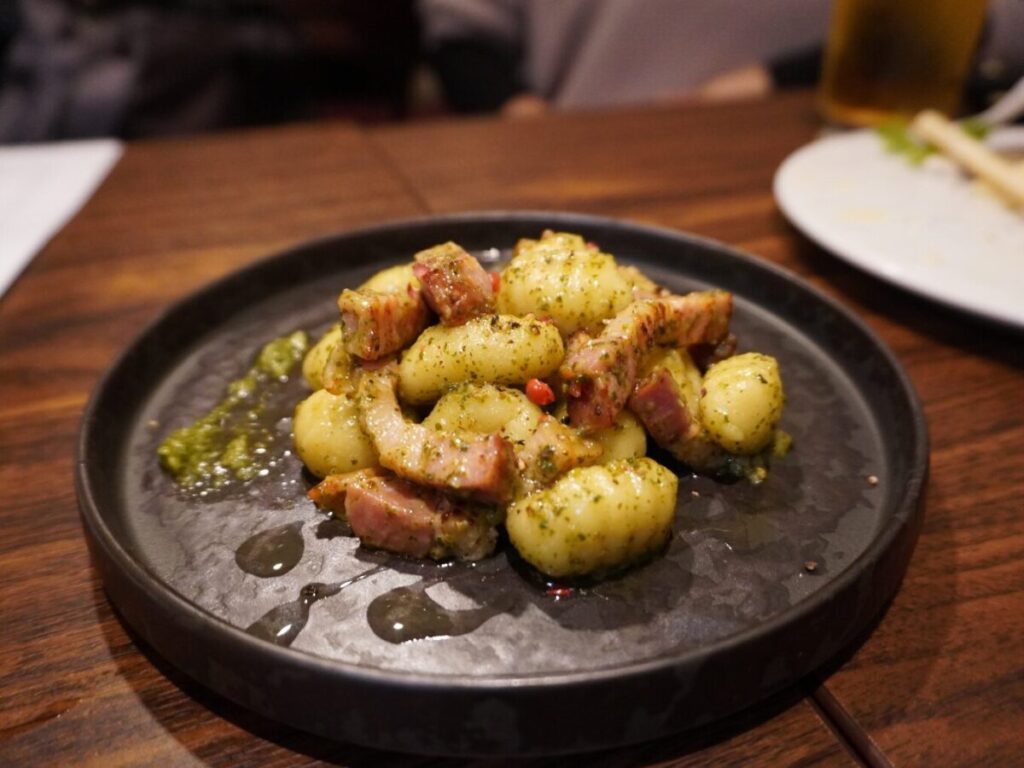 「ニョッキなんてどうですか?」と提案してくれたので注文しました。他にも生ハムとチーズの盛合せ、ガーリックトーストをいただきました。