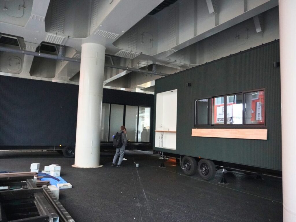 この2台のトレーラーは、3月上旬ごろにはデッキでつながる予定です。空間としての一体感が生まれて、より拠点らしい雰囲気になりそうです。