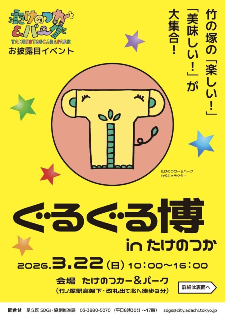 当日はたけパーの使い方がわかるほか、竹の塚の「美味しい」「楽しい」が集まる一日になるとのこと。たけトピも出展予定です!イベントについては以下の記事でもお伝えしています。