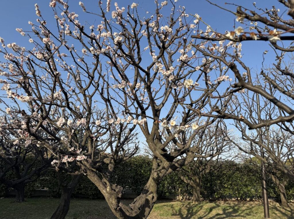 プチテラスという名前の通り、本当に小さなスペースですが、そこには梅の花が満開に咲き誇っていました(2026年3月1日時点の情報です)。