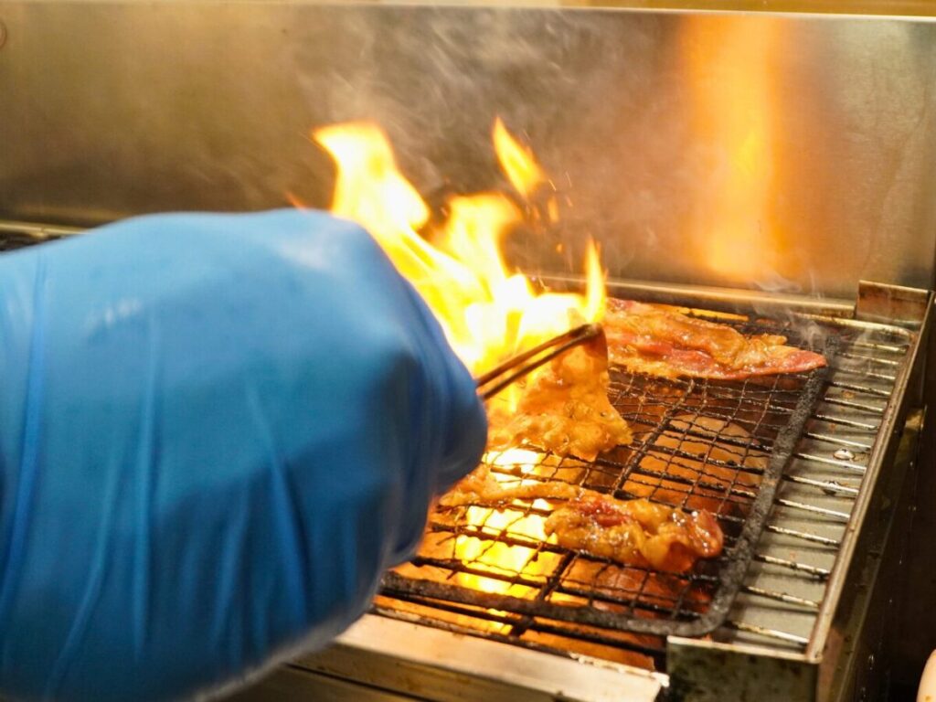 ジュウジュウと音を立てながら焼かれるお肉。見ているだけで食欲が刺激されてきます。