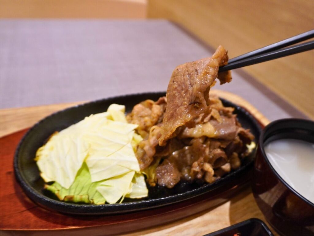 今月発売の新メニュー。大阪焼肉ふたごやの「熱々鉄板牛カルビ定食」