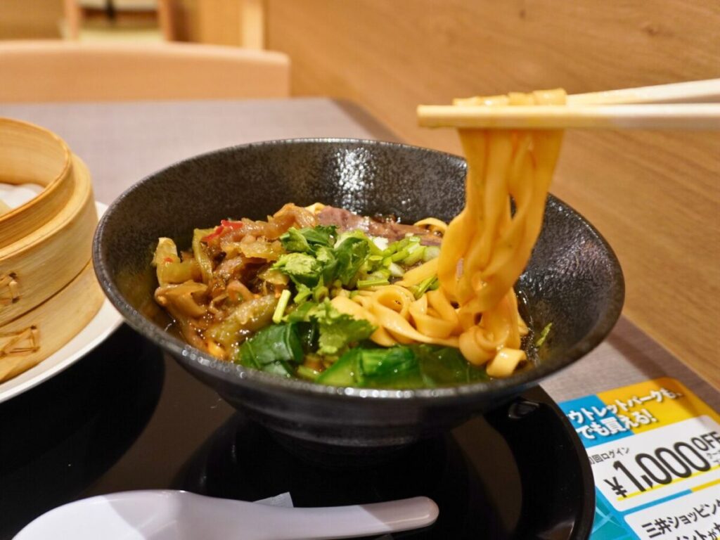 ピリ辛でコクのある醤油ベースの牛肉湯麺。